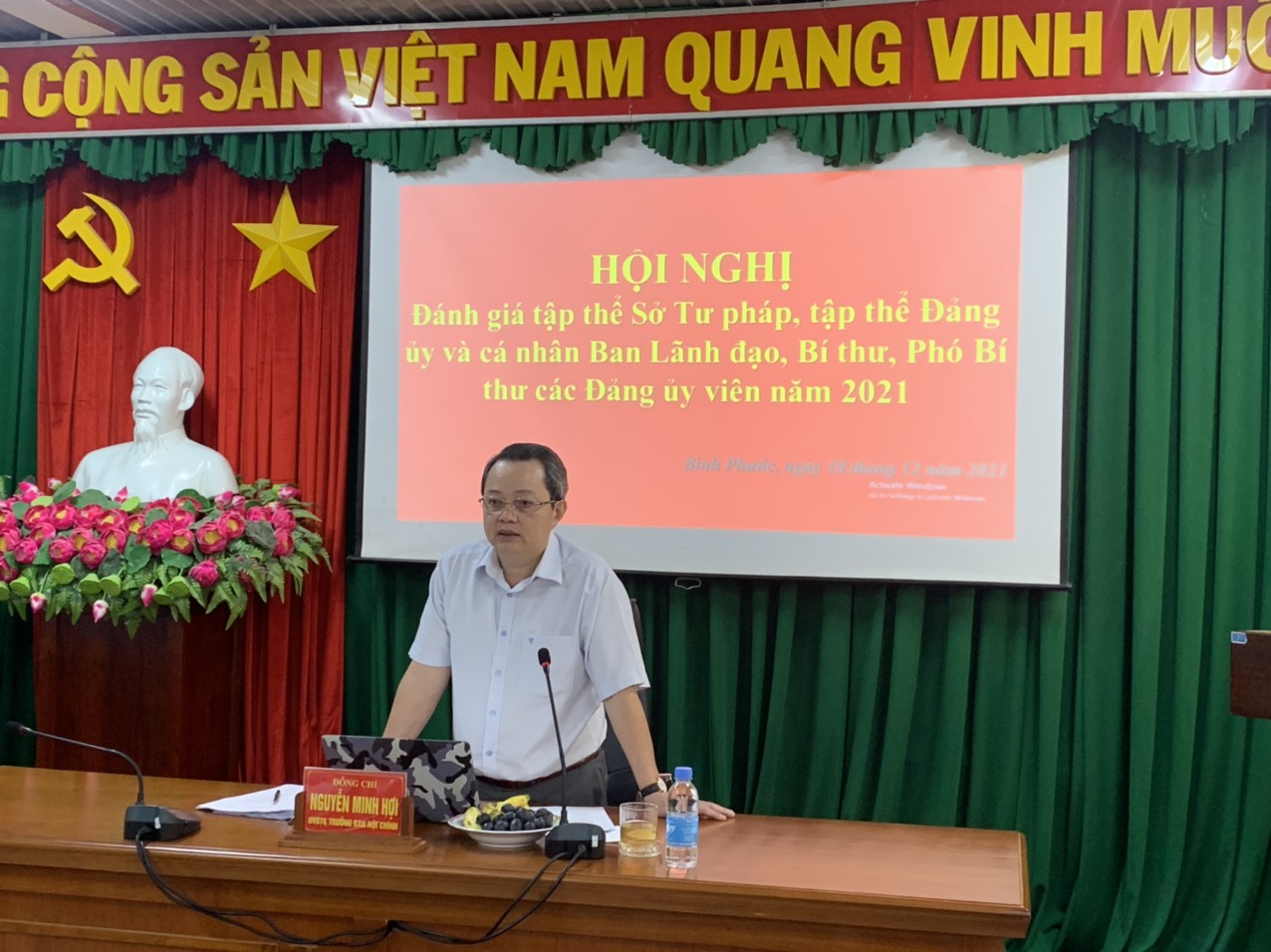 Hội nghị đánh giá tập thể Sở Tư pháp, tập thể Đảng ủy Sở Tư pháp và cá nhân các đồng chí trong Ban Giám đốc, Bí thư, Phó Bí thư, các Đảng ủy viên của Đảng ủy Sở Tư pháp năm 2021